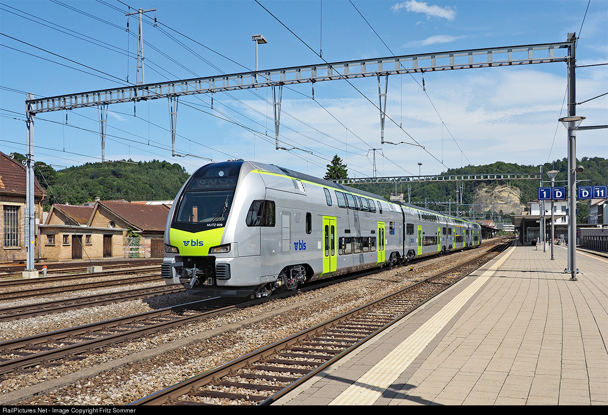 | The picture shows the delivery run of the brandnew doubledeck train RABe 515 # 029 for the BLS, just passing Burgdorf station. The # 29 is the first delivered train of three, the BLS reordered from Stadler Rail. The whole serie of this trains are carrying the nickname "MUTZ", that means "bear of Bern".