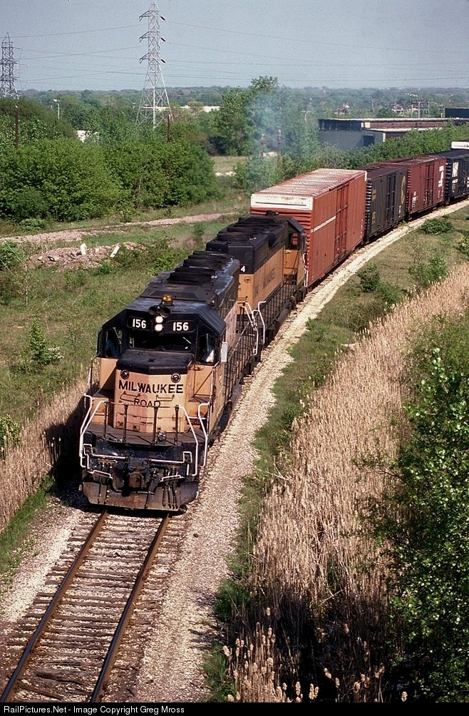 Detour! In May of 1986, the Soo Line detoured several trains over CNW's Adams Line due to flooding on their ex-MILW mainline between Milwaukee and the Twin Cities. Several freights and Amtrak's Empire Builder were detoured. Here MILW 156 is about to enter CNW tracks at Canco on Milwaukee's north side.
