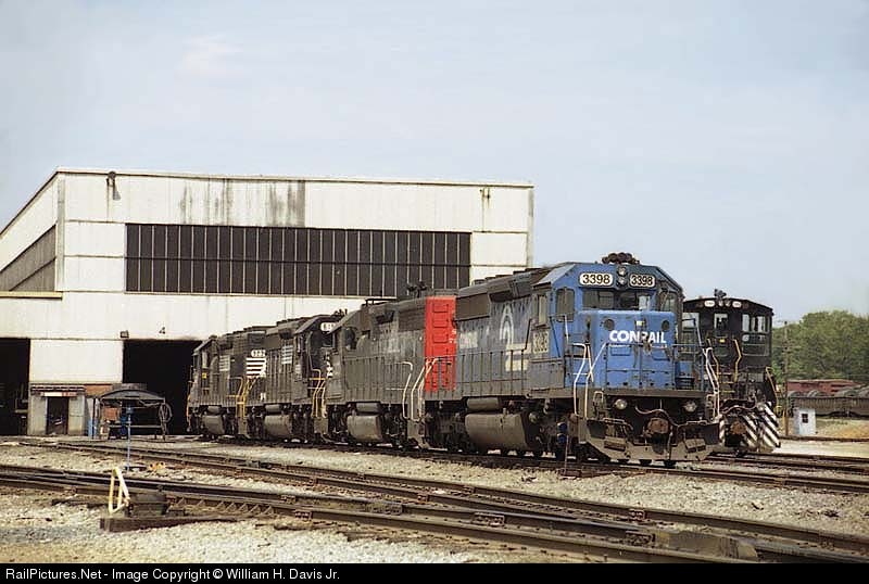 NS SD40-2 3398 still in Conrail paint coupled to an SSW ( Cotten Belt ) GP40-2 7277 & more NS units at NS'S Norris Yard service center in Irondale, Al. awaiting their next assignment