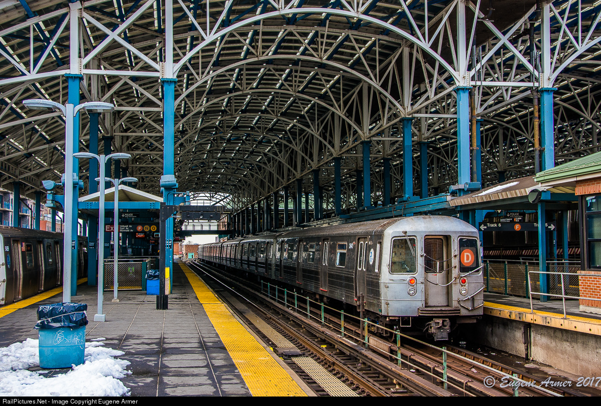 When a D is actually an F... At the Coney Island-Stilwell Avenue station, terminus for the D, F, N and Q trains, a D train stands alongside one of the F line platforms on a weekend when maintenance schedules had D trains running on the F line, and vice versa. This station has eight tracks and four island platforms. According to the New York City Transit Authority, this makes it one of the world's largest elevated transportation terminals, as well as the largest in North America.
