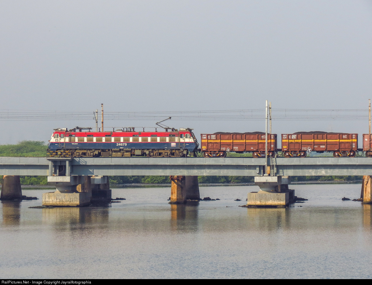 BHEL ( Bharat Heavy Electricals Limited ) manufactured WAG-7 of VALSAD shed with coal freight crossing Ennore creek