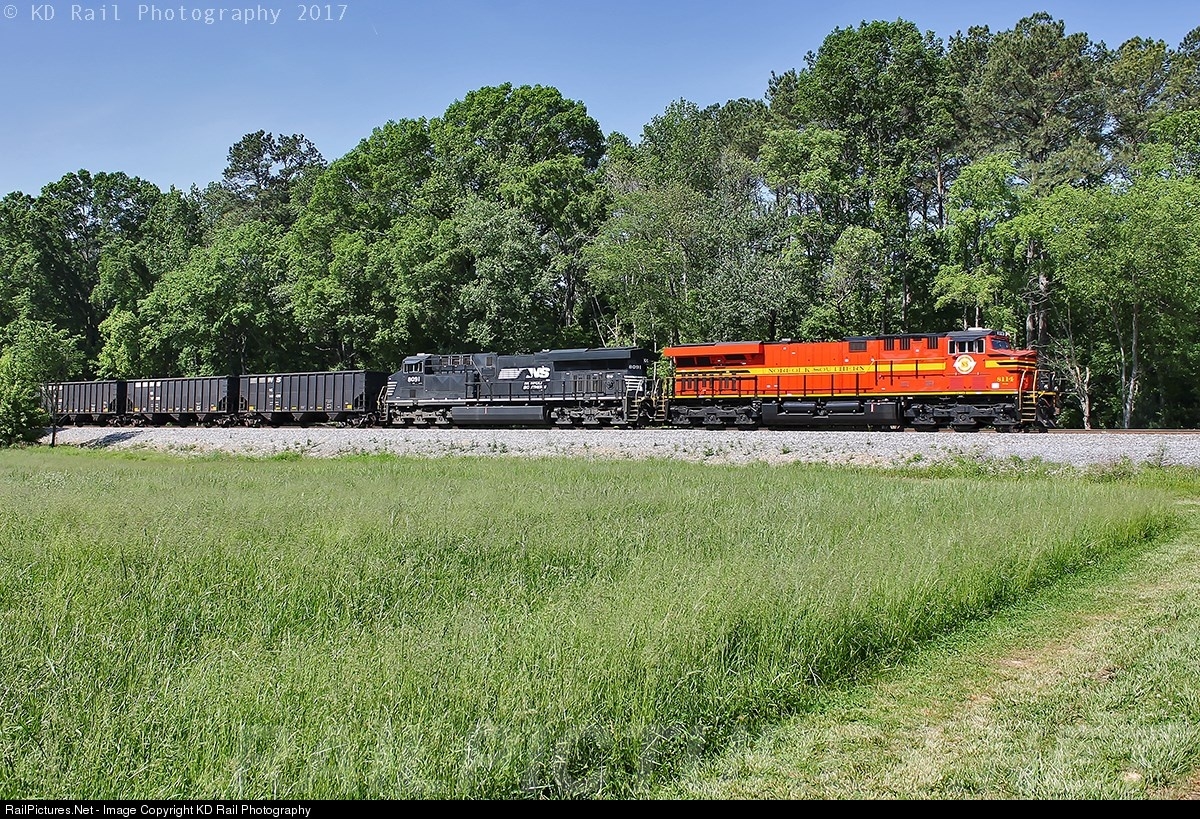 The Original NS Northbound NS 797 thunders pass the Pilgrim Pride chicken farm in the rural community of Varnell, GA on the NS Atlanta North-End heading back to the Illinois Basin after dumping the train at the Georgia Power Hammond Steam plant just west of Rome, GA on the Coosa River. With a curfew going on it normal route up the CNO&TP 2nd District, the North-End dispatcher had giving the crew a track authority to proceed on the main 1 track from Varnell, Ga to the NS Cohutta District (I-Line) to Cleveland, TN. Once there a crew change would be made, and the empty coal bucket will run north to Knoxville, TN eventually getting back on the CNO&TP via of the K&O District.