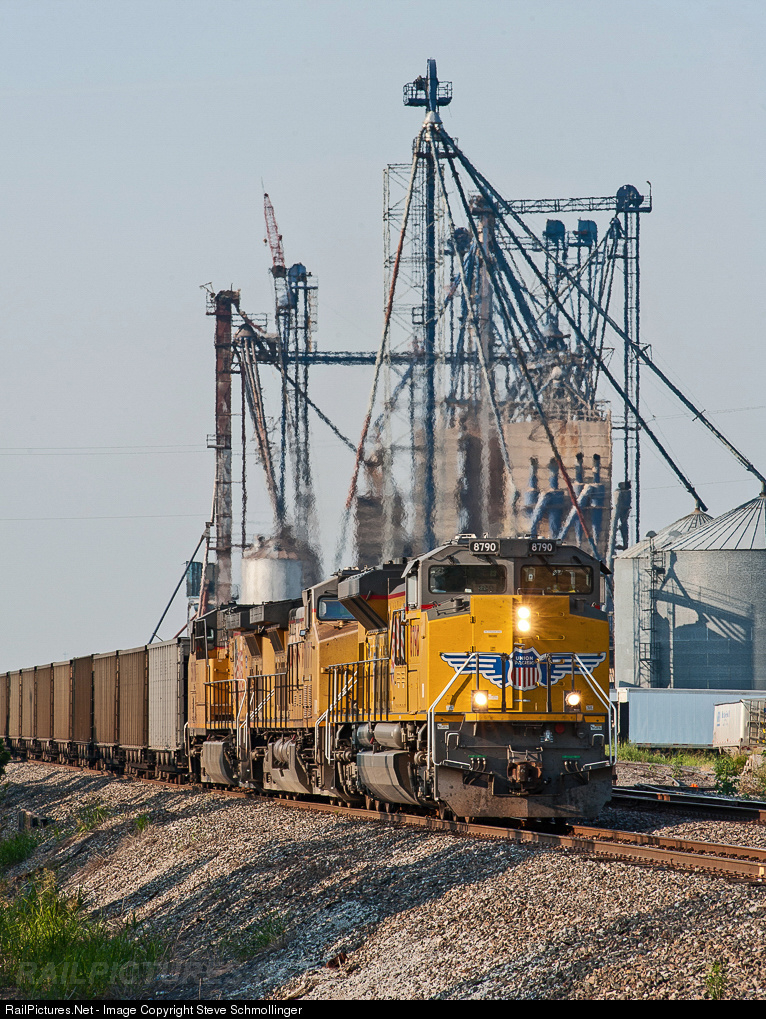 Early on a humid Saturday in 2013, UP coal empties crawl up the siding at Valley View, TX, after meeting a BNSF QKCKSAG, the westbound NS RoadRailer out of Ft. Wayne, IN. The UP northbound is a trackage rights train headed for the PRB via Wichita, KS.