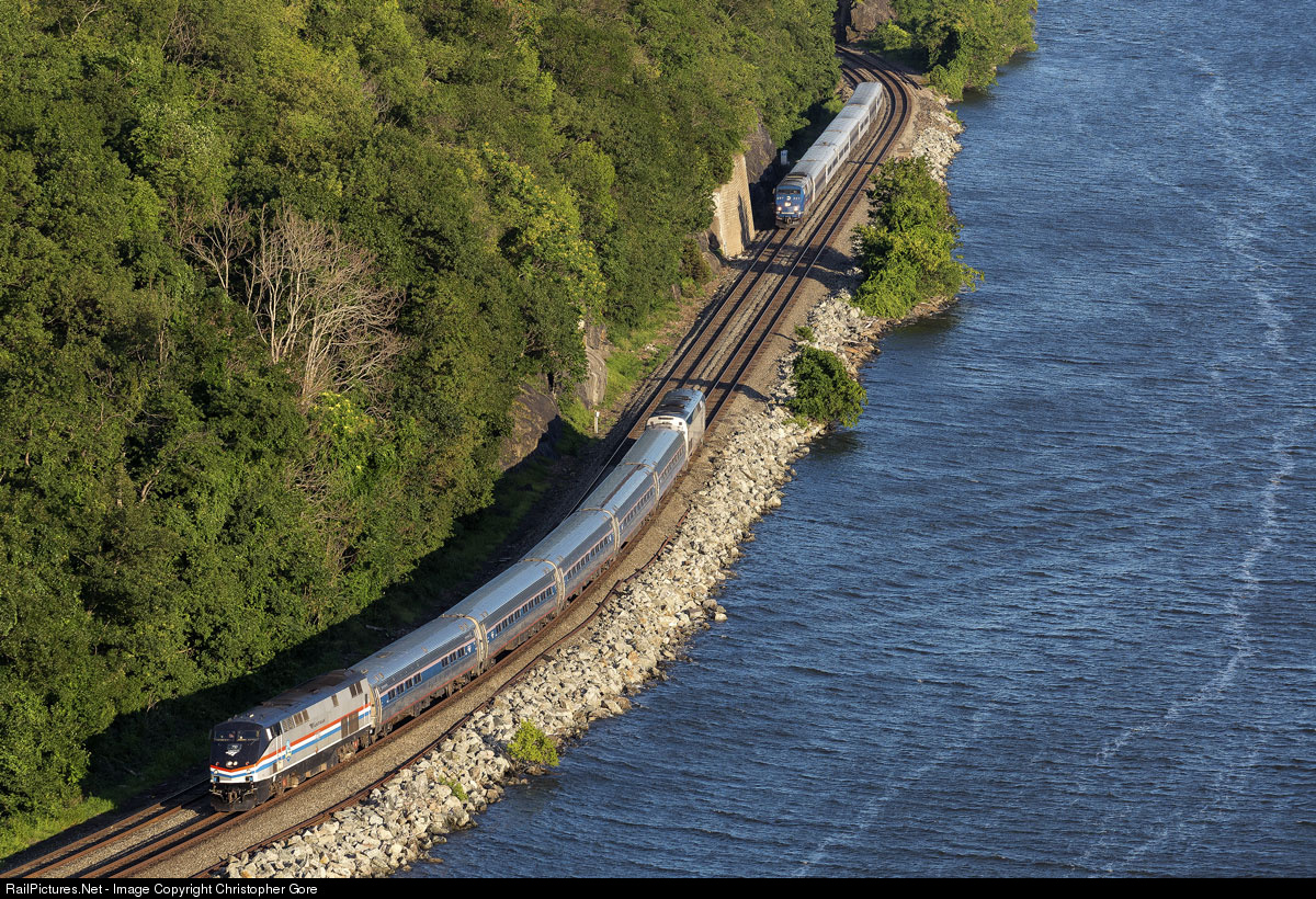 Amtrak train 239 heading north has just overtaken a northbound Metro North train.
