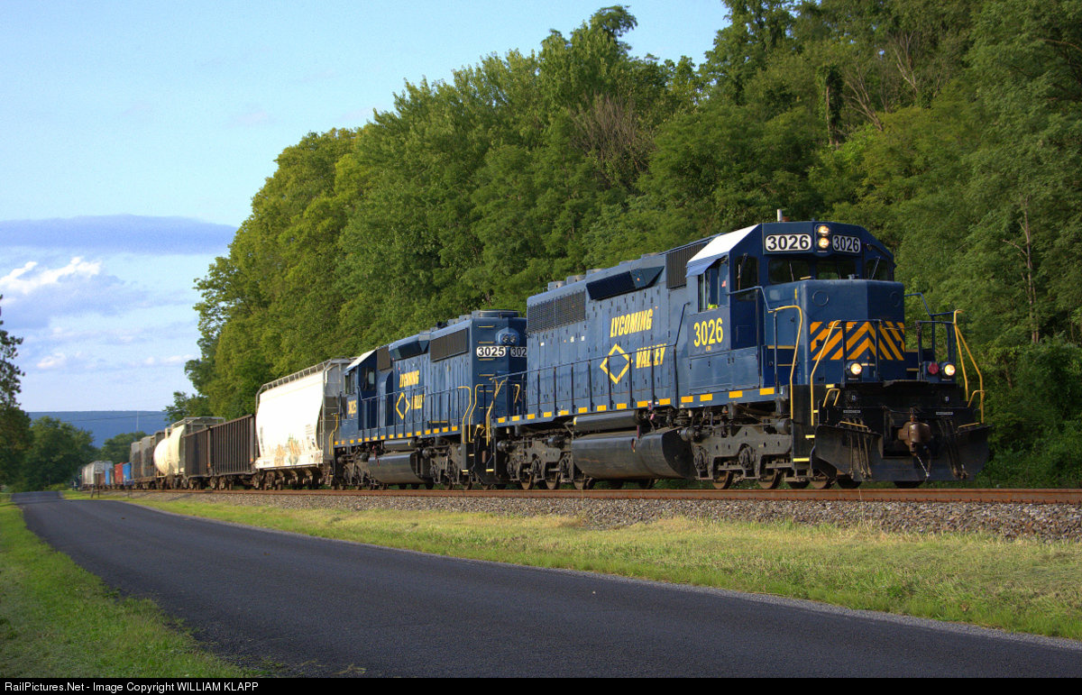 RailPictures.Net Photo: LVRR 3026 , 3025 Lycoming Valley Railroad EMD SD40-2 at Dewart, Pennsylvania by WILLIAM KLAPP