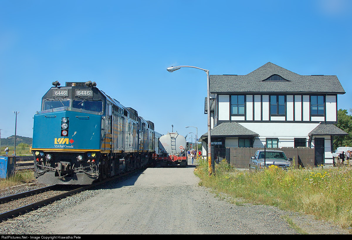 Our Latest VIA Trip! Rebuilt F40PH-2 #6446 on the point of train #2, The Canadian, refuels at Sioux Lookout, Ontario. This photo is from the latest trip my wife & I took in Prestige Class on the 'Canadian' from Toronto to Jasper, AB to visit Jasper & Banff National Parks, the Banff Springs Hotel and various preserved railway equipment in Alberta & British Columbia before continuing on the train in Sleeper Plus Class to Vancouver. For more pics & videos from this trip visit my webpage at http://northamericabyrail.info/a-trip-on-via-rails-canadian-2017-toronto-on-jasper-ab-banff-ab-vancouver-bc/