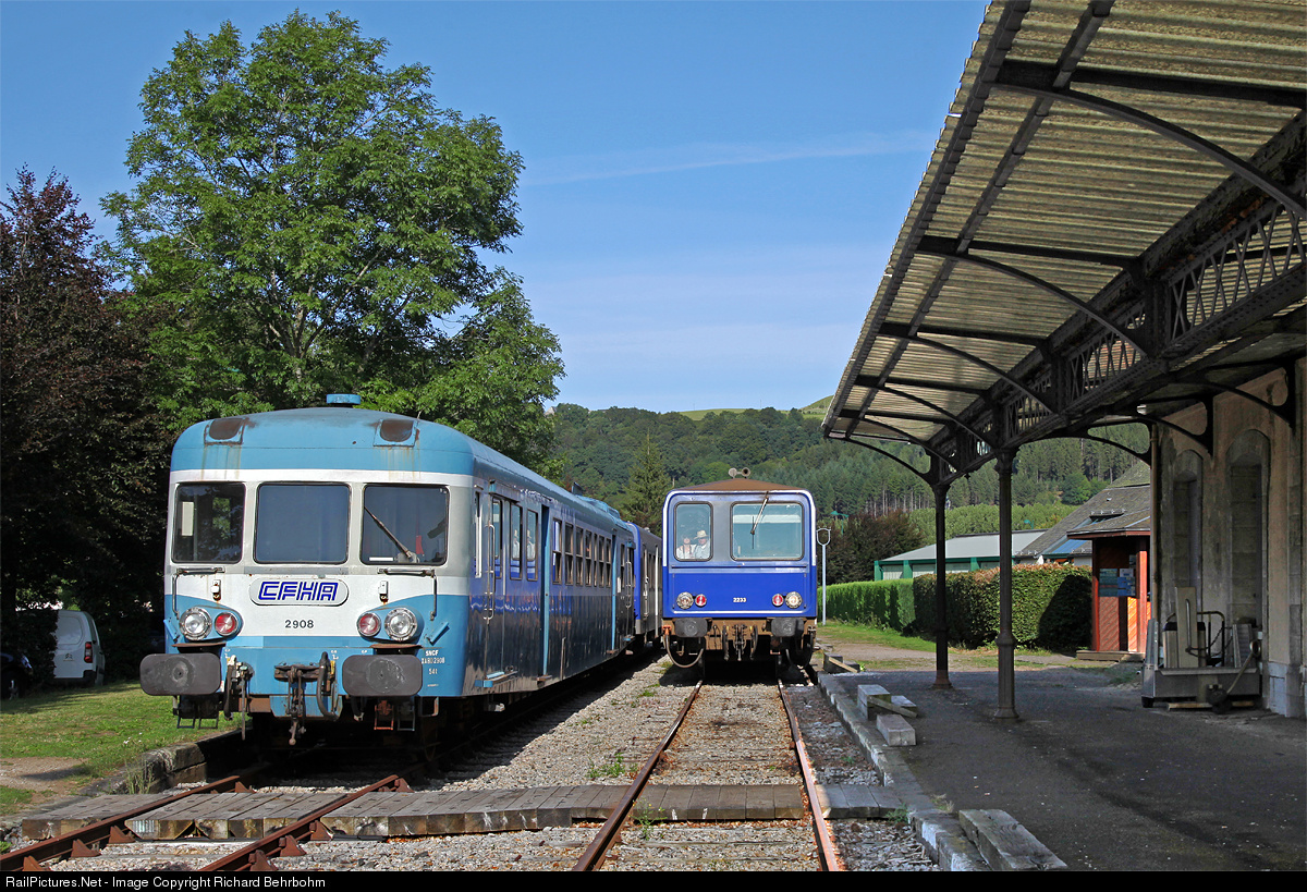 | X 2233 arrives in Riom-ès-Montagnes, terminal station of the heritage railway Chemins de Fer de la Haute-Auvergne. |