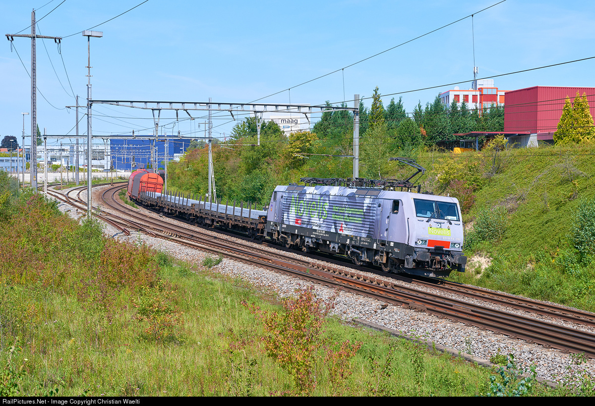 | MRCE ES 64 F4-090 (189 990-5) "Göttingen" (leased to SBB Cargo International) in charge of the Novelis unit aluminium train from Göttingen (Germany) to Sierre (Switzerland). Because of a line closure near Rastatt (sunken tracks due to underground works for a new rail tunnel) the train is on a detour, reaching Switzerland via Schaffhausen instead of Basel. More than 7 hours behind schedule, train 44090 Göttingen Gbf to Basel SBB Classification Yard is slowly accelerating out of Niederglatt. |