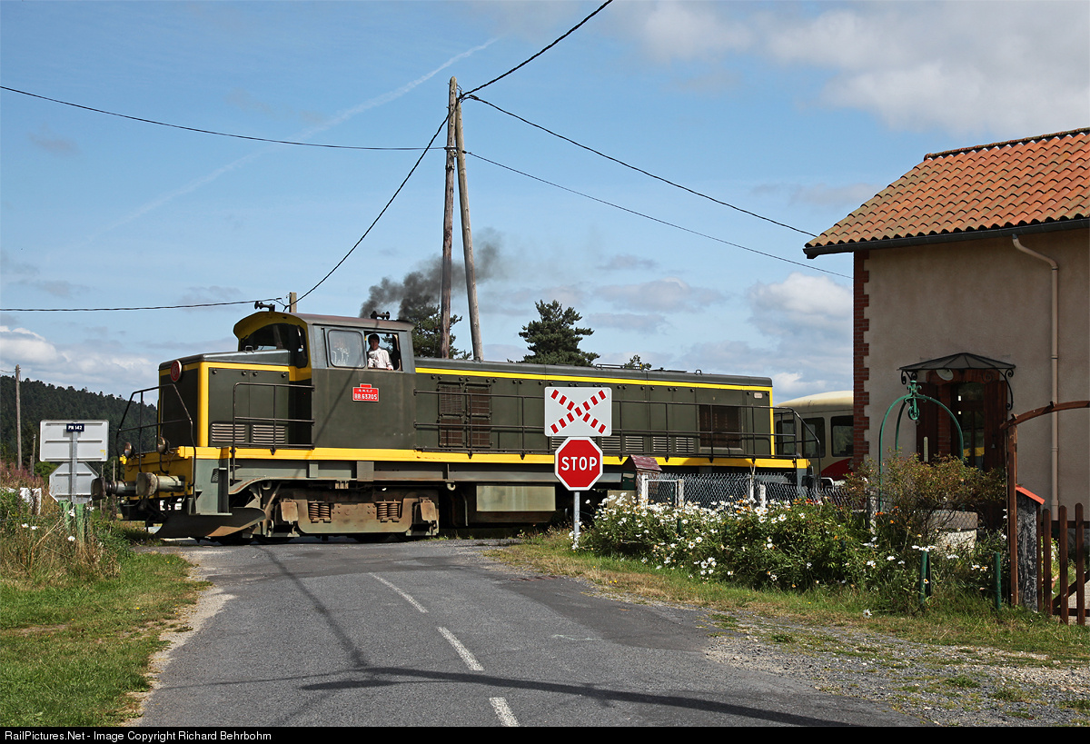 | BB 63705 with a trailer railcar en route on the heritage line Estivareilles - La Chaise-Dieu of Association Chemin de Fer du Haut Forez (CFHF). |