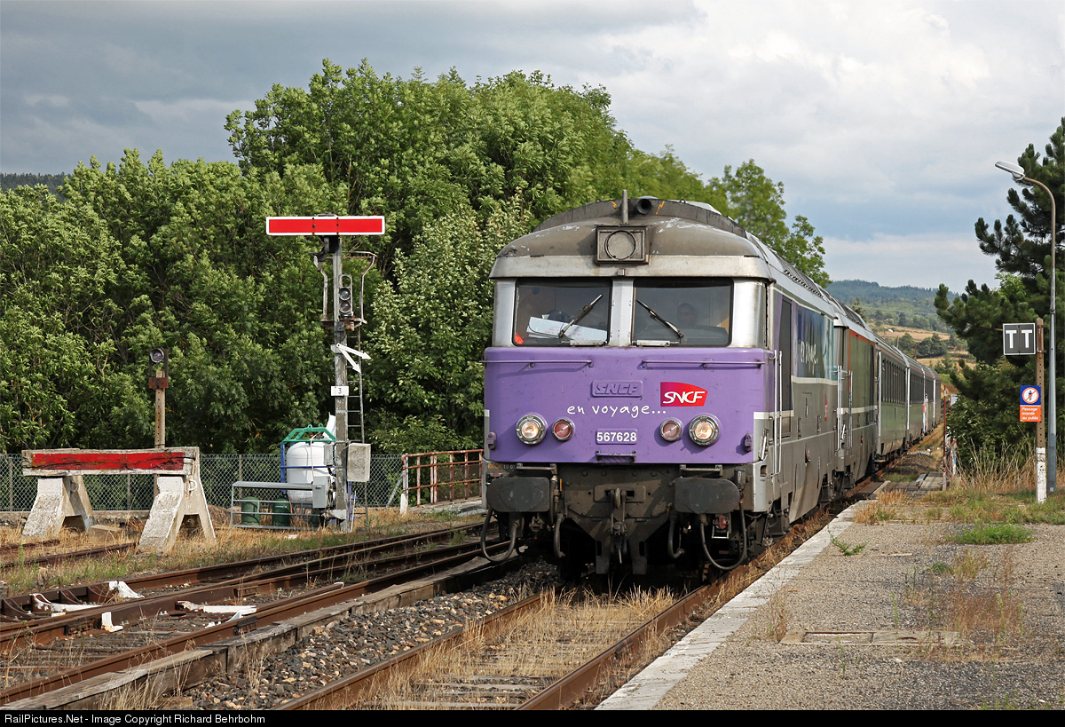 | BB 67628 and a second BB 67400 arrive in Langogne. The station is still equiped with mechanical signals. |