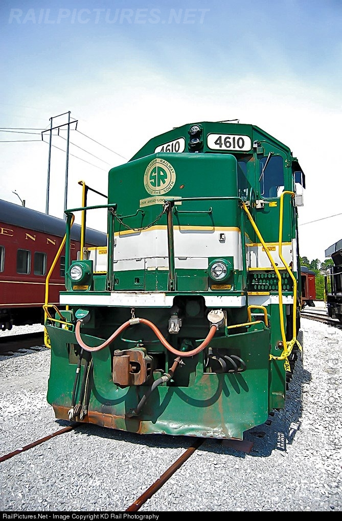 With blue skies overhead NS 4610 is participating the Tennessee Valley Railroad 1st annual National Train Day event, and one of the last few public events in it's iconic tuxedo green paint scheme. NS 4610 is a GP59 followed the EMD practice of numbering one down from the parent series to denote a turbo 12 cyl offering. The GP59 (60 Series) has a 12-710G3A @ 3000 HP, the GP49 (50 Series) has a 12-645F3B @ 2800 HP, and the GP39(-2) (40 Series) has a 12-645E3 @ 2300 HP. NS 4610 was the only GP59 painted in the Southern experimental Tux Green to commemorate the 100th anniversary of the Southern Railway at the suggestion of Benjamin Lee and others at NS which made a mainstream appearance at the 1994 NRHS Convention in Atlanta, GA. 16 years later this small locomotive have made a name for itself, among railroaders, and railfan's alike. Time is the enemy and it was ticking for this GP59, and signs was very clear that the railroad wasn't going to keep this motor in the Tux Green for long. Years later it was sent to Altoona for a repaint in the new up to date NS black and white Operation Life Saver scheme. If only we knew then, that two years later in 2012 that NS would approve the idea of Andy Fetcher and painted 20 new locomotives in the color schemes of NS predecessor railroads for NS Corp 30th anniversary.