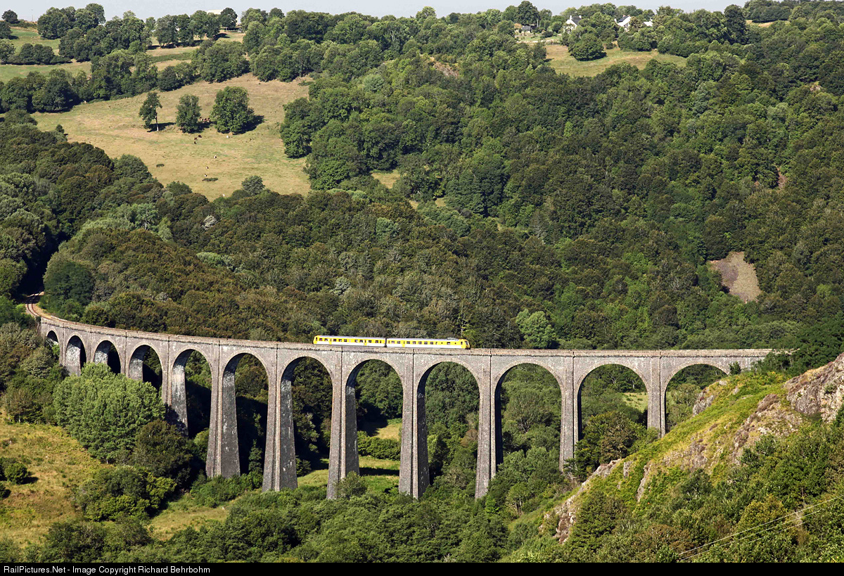 | The railcar is preserved and in operation by association Chemins de Fer de la Haute Auvergne. X 2725 is crossing the viaduct of Barajol on the heritage railway line Riom-ès-Montagnes - Lugarde. |
