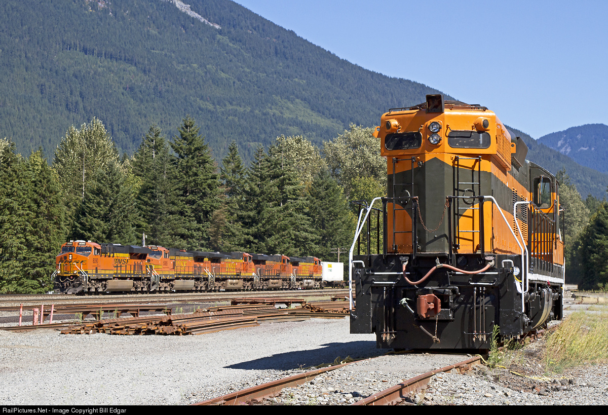 | BNSF 8090 pays its respects to GN 599, the last SD9 acquired by GN back in 1958. GN 599 is in the process of being cosmetically restored and will be on permanent display in Skykomish near the depot which is now a museum. |