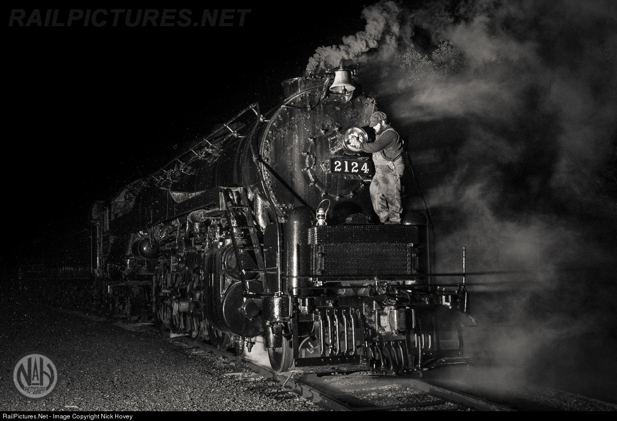 | Spotted on the ready track, a Reading T-1 receives some final attention from a hostler before being coupled to an outbound train. This photo was shot after a very successful night photo shoot at Steamtown National Historic Site in conjunction with the Lackawanna & Wyoming Valley Railway Historical Society. Lighting by Steve Barry. Since I posed for this scene, Bruce Barry grabbed my camera and shot for me. |