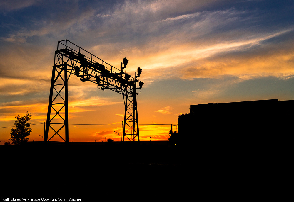 | Exactly two years ago to the day, I spent the evening shooting trains passing under the iconic New York Central signal bridge at CD 192 in Brookpark, Ohio. This was a longtime favorite location of mine that unfortunately faded into history soon after this image was made. Here a westbound hopper train rolls under the signal bridge silhouetted by a beautiful late summer sunset. As it turns out, this would be the final evening I would spend at this location before the signals were replaced. |