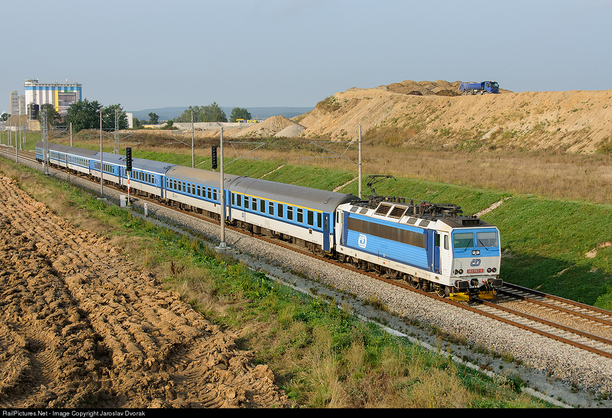 Morning Express R 722 JAN ZIZKA at the head with CD 362 083-8 locomotive to Prague is captured as it crosses the section between Dynin and Horusice