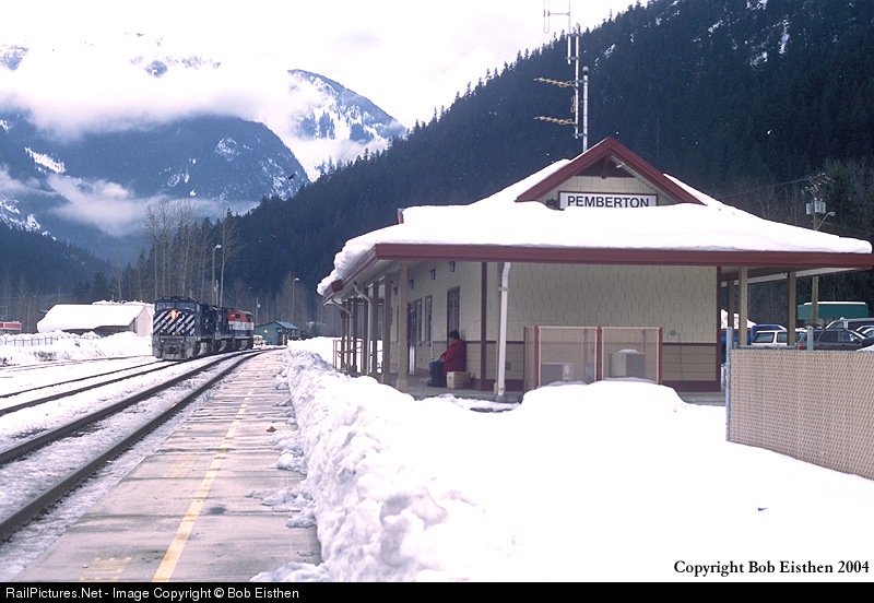 Pemberton Push engines pull up short of the old train station (now Greyhound) before reversing to the spur where they sit between assignments.