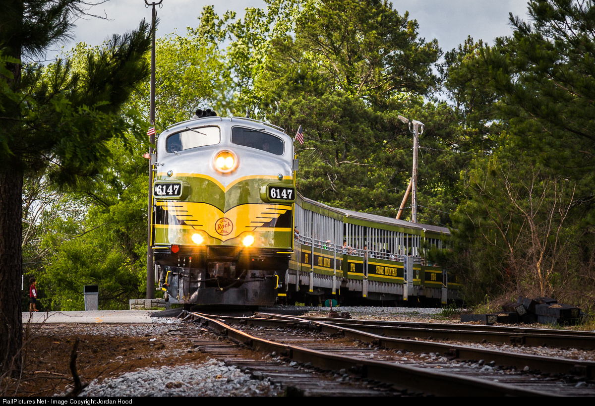 Stone Mountain train 100 passes the out-of-service wye connection to CSX's former Georgia Railroad mainline at the walk up trail on a pleasant spring afternoon.