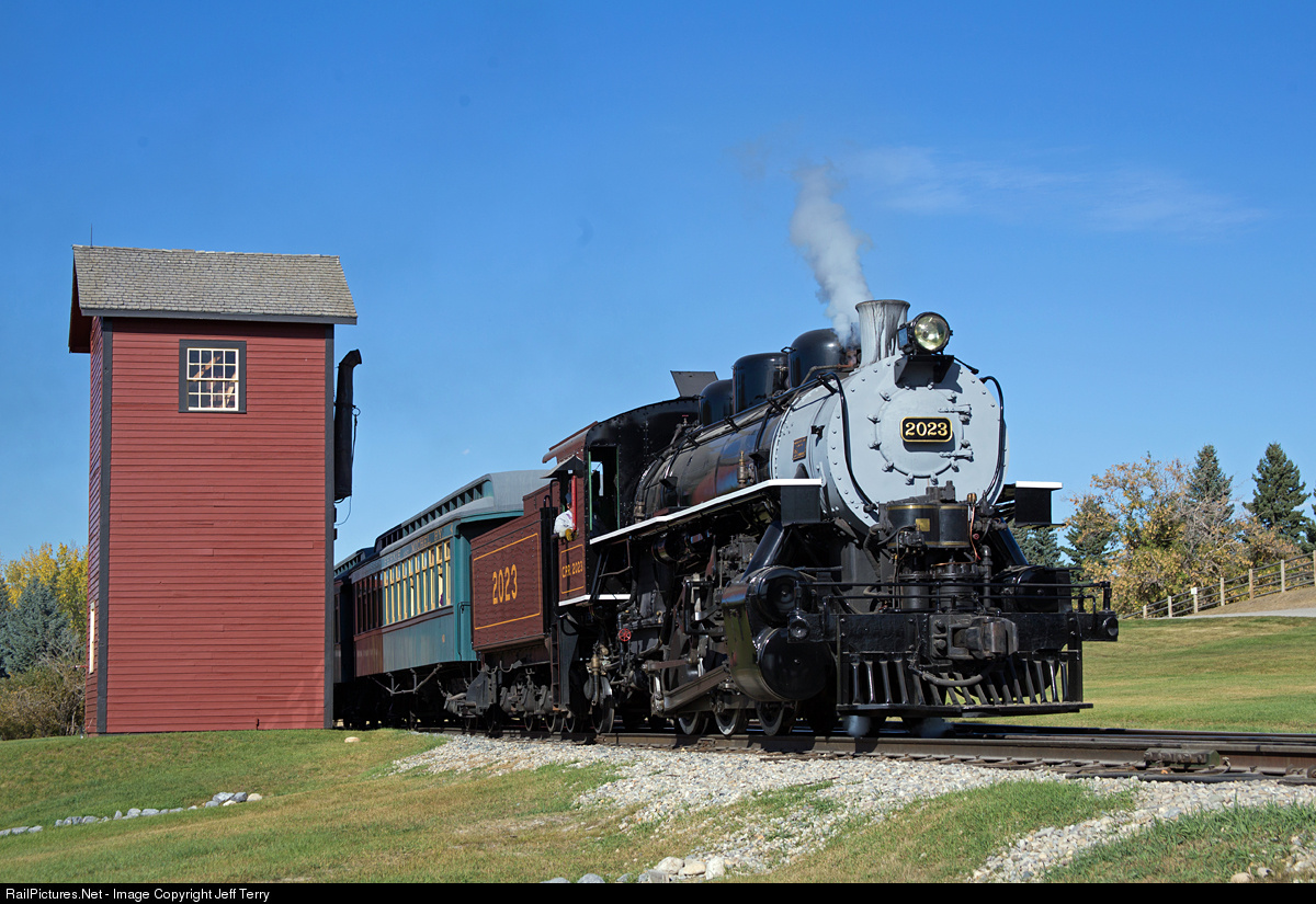 | This former US Army 0-6-0 has been refurbished as a Canadian Pacific locomotive for service at Heritage Park Historical Village, located south of downtown Calgary. It pulls a train of vintage coaches around a large loop of track. |