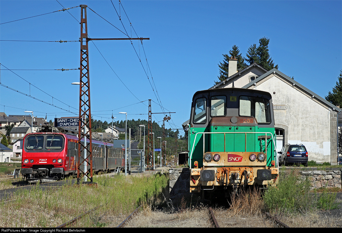 Z 7367 is at this day one of two passenger trains on the line Saint-Chély-d'Apcher - Béziers. Y 8208 is a shunting engine.