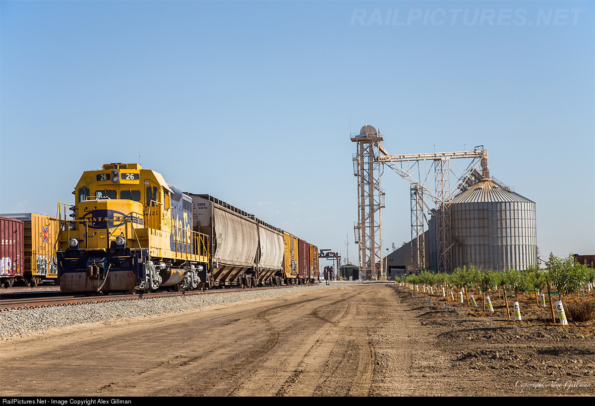 Santa Fe's first ever GP9 still kicking it. It's just after 10:00 a.m. this morning in Kings Park and the temperature is already hovering above 90 degrees. Soaking up the hot summer sun at one of the grain facilities located south of Hanford is the AARX 26, a 61-year-old GP9u living out its days as a grain car shuttling unit. Built in 1956 as ATSF 700 for the Santa Fe, this unit was the class unit for the railroads first GP9's before it would go on to be renumbered ATSF 2260 some years later. Somehow always managing to find work near home rails, this unit has seen its share of grain facilities up and down the Central Valley before finding its way here to Kings Park...where who knows how long it will remain at before it moves on to another one!