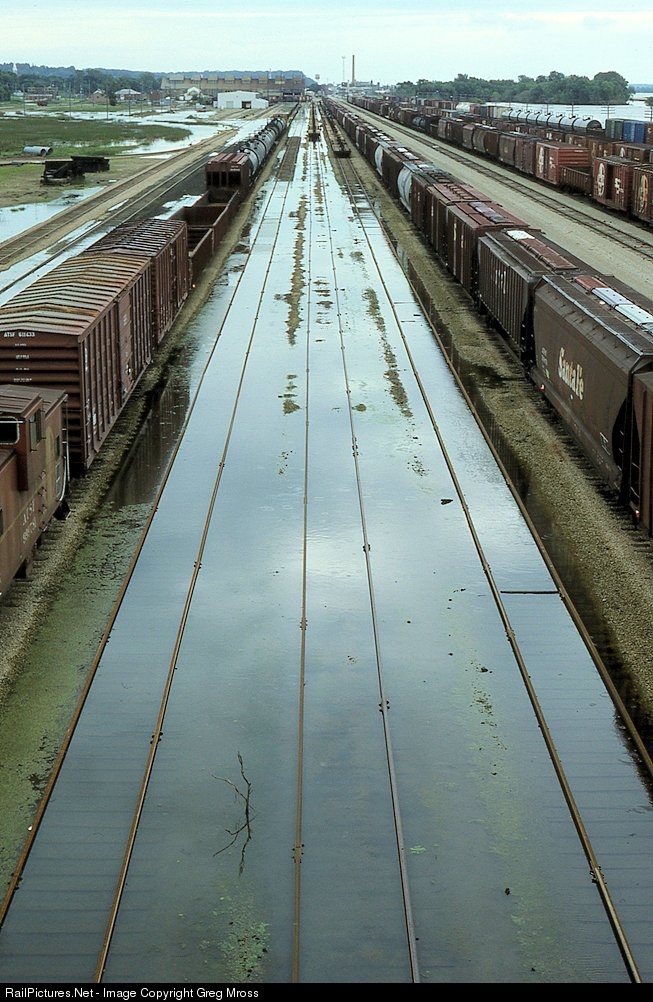 Hurricanes are not the only source of major flooding as anyone who lived thru The Great Flood of 1993 can attest. The Mississippi river set many records that year. Over a month after the river had crested, yard tracks are still partially underwater at the Santa Fe yard in Fort Madison. It was amazing to see just how far the water travelled over the banks of the river.