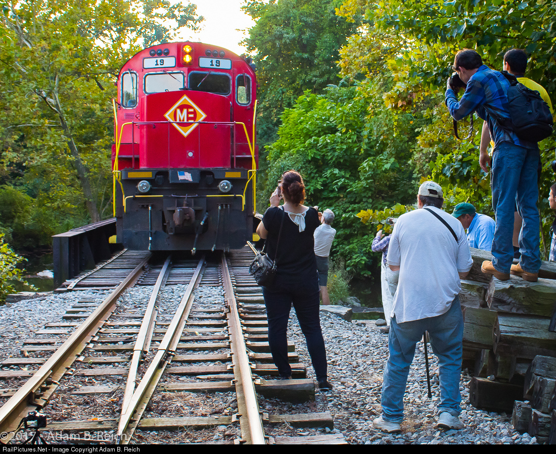On Railroad Property with Permission: Tri-State Railway Historical Society members take advantage of a photo stop at one of the trestles crossing the Rockaway River during a rare excursion along the Dover & Rockaway Branch on Sunday, September 17, 2017.