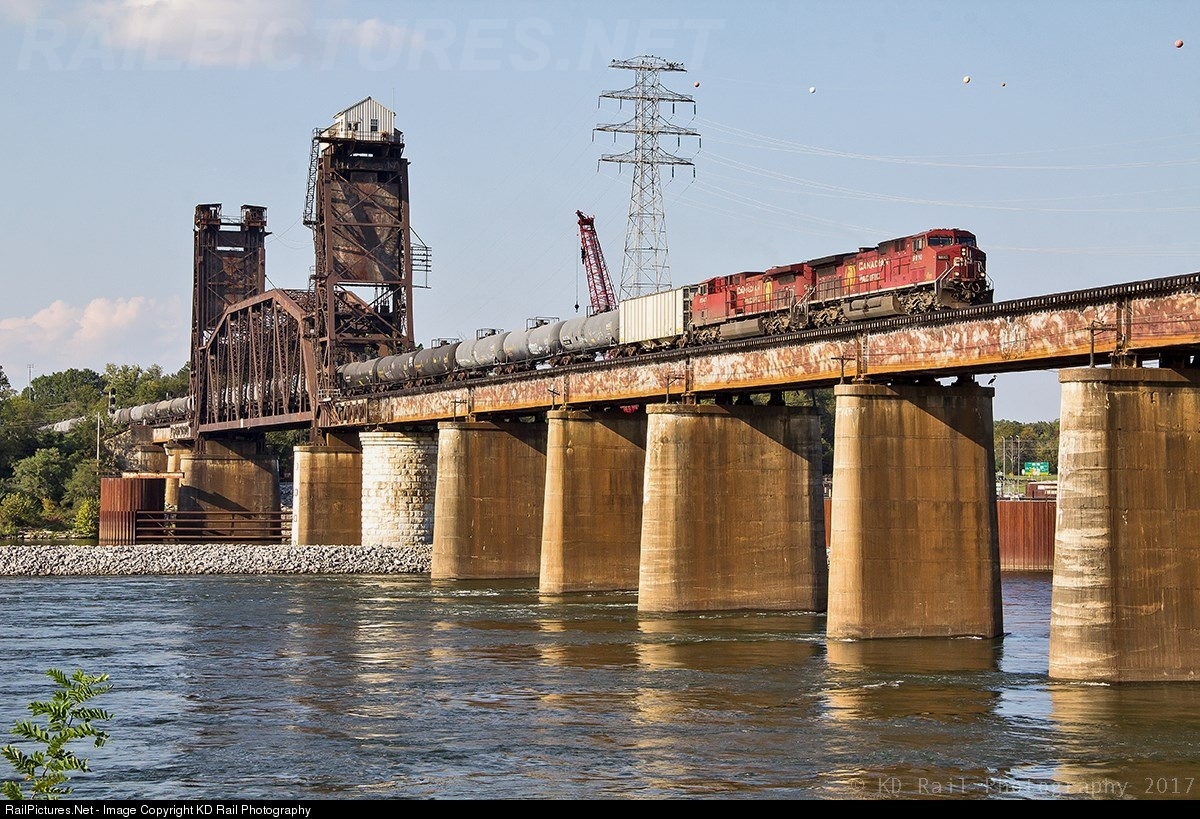 | NS 64Q is slowly crossing the Tennessee River on the last few miles on the CNO&TP 2nd District heading for the crew change point at Brown. CT-Dispatcher had to line the loaded Ethanol train from the main 1 track to the main 2 track at CP-Tenbridge, due to the south bound loaded Hammond Steam Plant coal bucket NS 708 occupying the main 1 track on the Boyce block as the coal bucket heading south for the NS Atlanta North-End. With no other train traffic planned to go north on the Cincinnati Southern (CS) the long unit ethanol train is heading to the crew change point at "Brown" where the outbound Georgia Div. crew is waiting to take over the train. Once the crew change is complete the outbound crew on board the CP motor will guide the train out of Chattanooga heading for the NS Atlanta North-End, and it's off to Atlanta, GA for this segment of this long journey of the Florida East Coast Railroad in Jacksonville. |