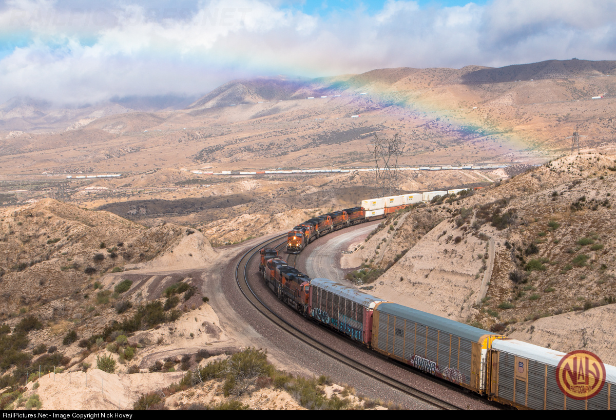 Sunshine and Rainbows- With plentiful trains running on Cajon Pass, good sunlight, and a bit of moisture in the air from a morning thunderstorm, all the pieces of an epic railroad photograph came together in my viewfinder. Cajon on a sunny day does not disappoint.