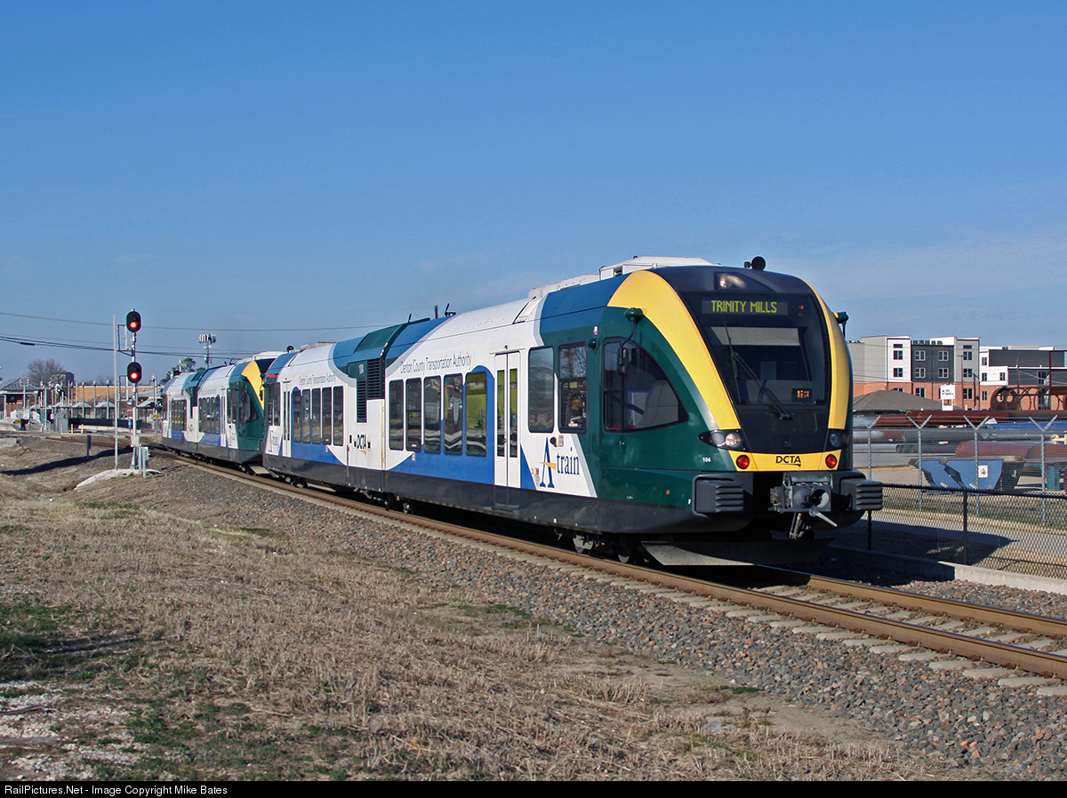 RailPictures.Net Photo: 104 Denton County Transit Authority Stadler DMU at Denton, Texas by Mike Bates