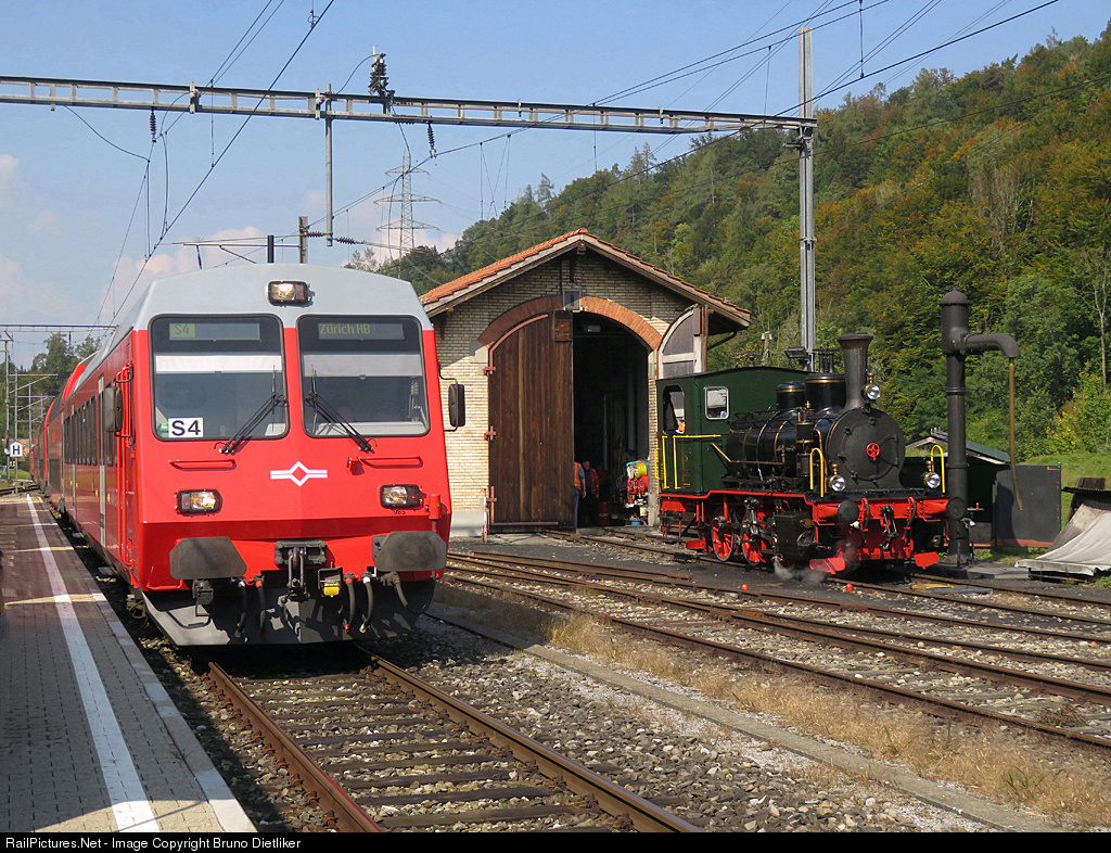 | Modern meets old: Localtrain line S4 toward Zürich HB meets steamloc 'Schnaaggi Schaaggi' (Ed 3/3, built 1899) |