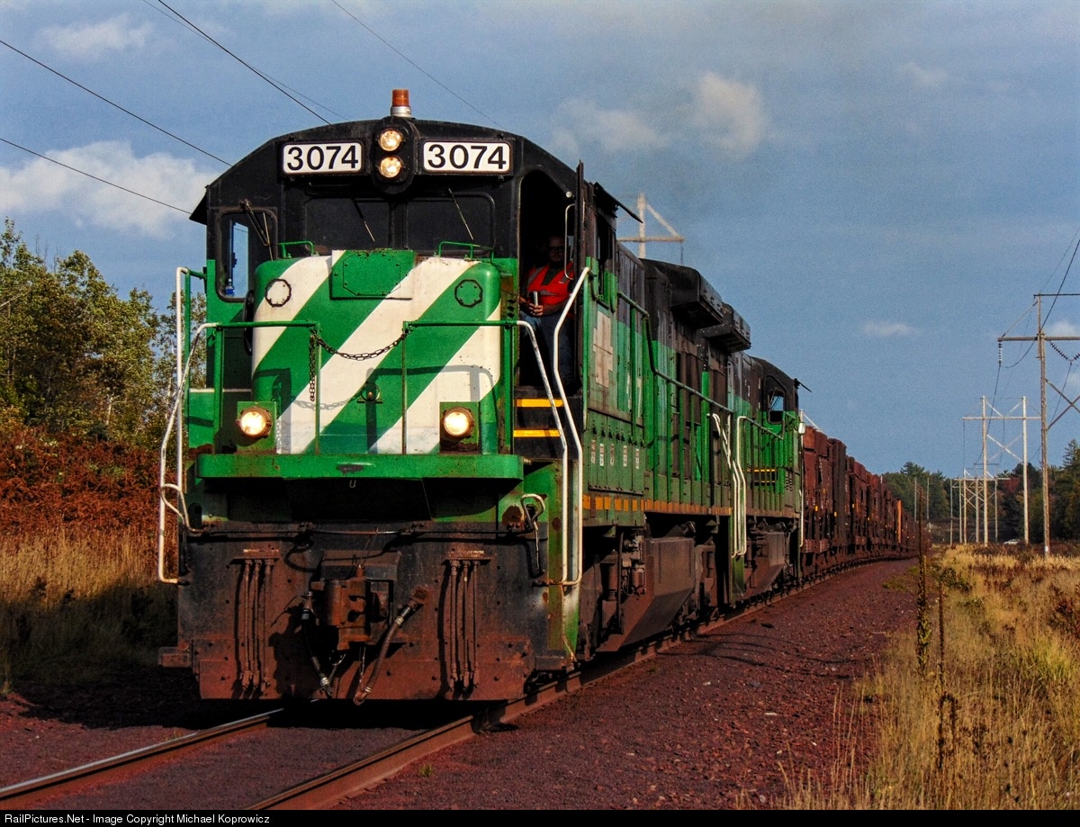 The familiar chugging sound of 16 cylinder FDLs fills the air as the "Green Machines" head west from Eagle Mills to the Tilden Mine for more iron ore.