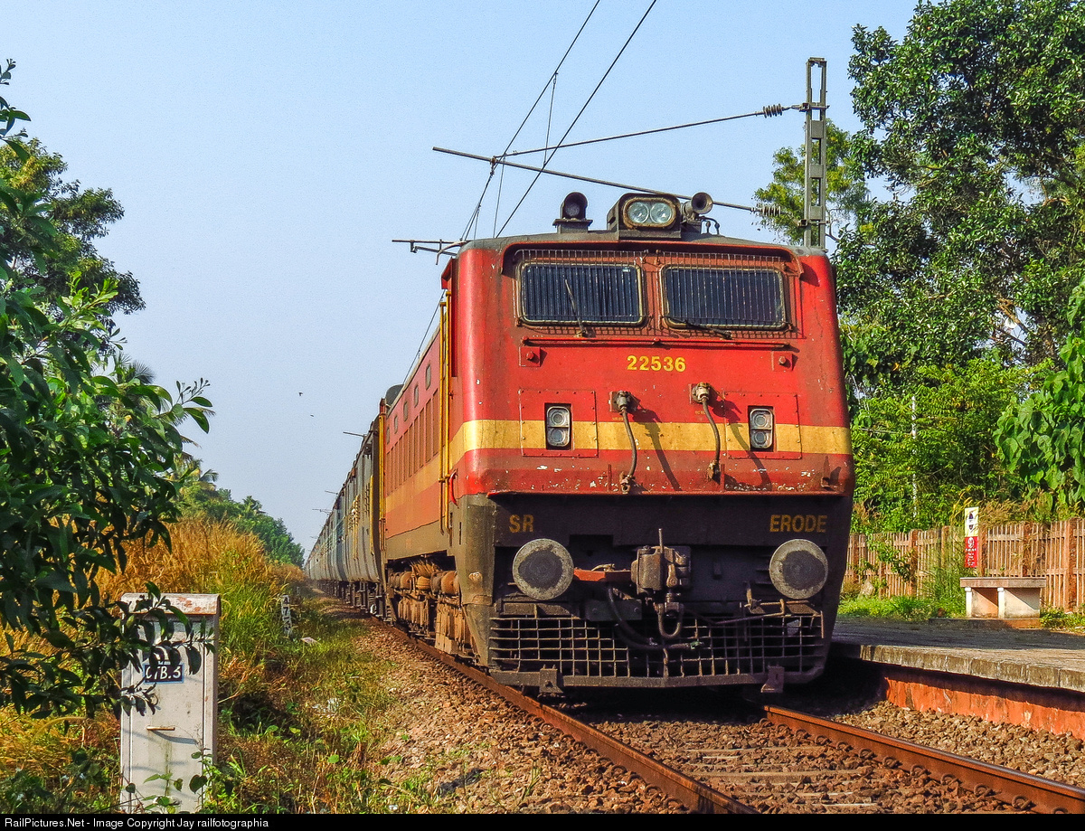 Ahaliyanagari Express from Indore, bound for Thiruvananthapuram Central rushing through Kalavur on a sunny evening