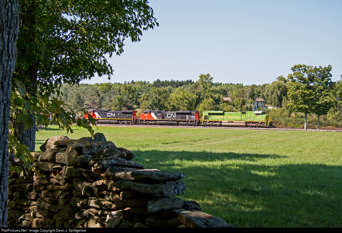 | NS's 22K intermodal from Chicago, Ill to Ayer, MA featuring Illinois Terminal inspired Heritage and CN power skirts one of the Harrington Family's fields in the rural Schenectady County town of Duanesburg.
