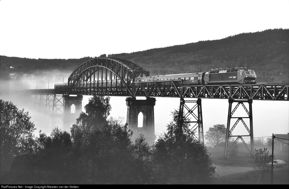 NSB El.17.2232 crosses with train 44 from Stange to Oslo S the bridge over the Vorma. Normally this train comes from Trondheim. This was by the time not possible due to massive floodings of the river in the Gudbrandsdal.