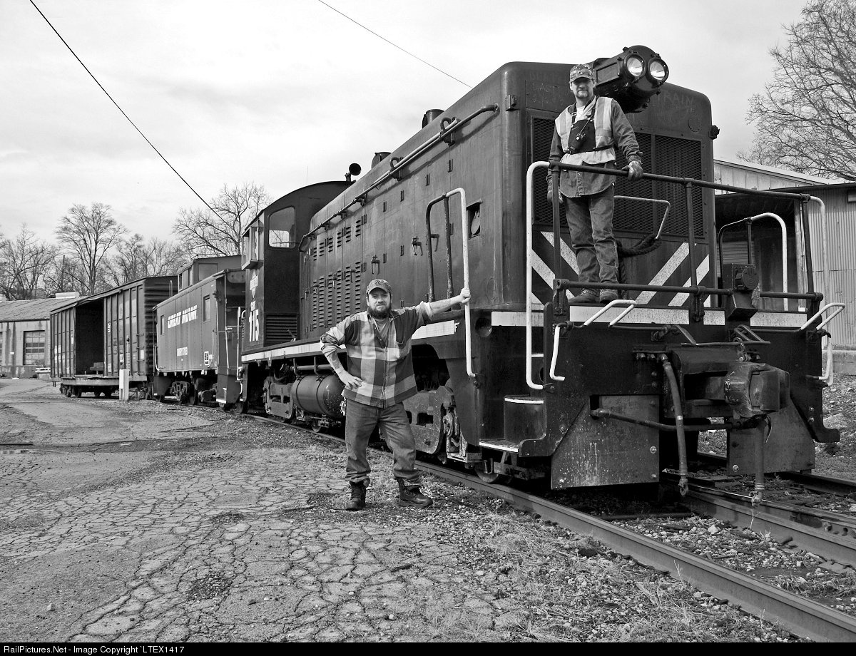 | Conductor L. Hubbard and myself as we prepare to run the last train out of the Smart Paper (formerly Champion) mill. The first train came in Nov. 1898. Caboose in tow, GMRY 783, was restored to it's NKP heritage and now resides in Bellevue, Ohio. The 115 was returned to LTEX and the boxcar was cut up for scrap. |