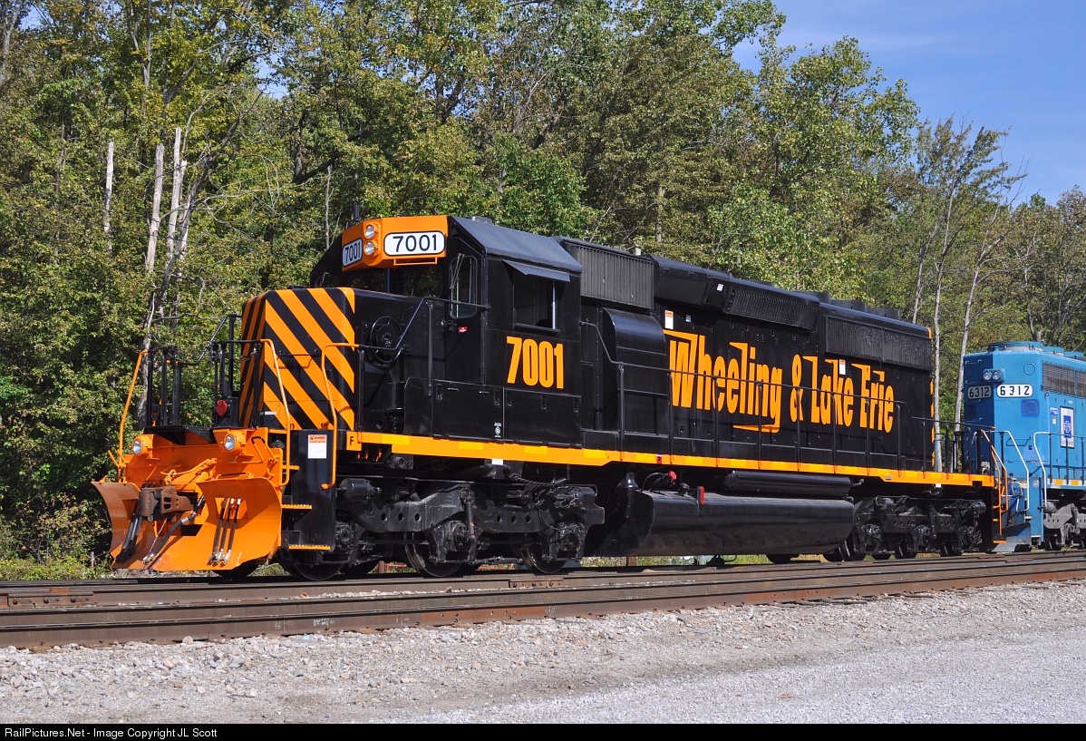 Sharp looking Wheeling 7001 works at Hartland Yard. According to the NSDash9 Wheeling roster this unit was built 1/1980 as UP 3664 with rebuilding completed at Brewster 3/2017, including the addition of PTC.