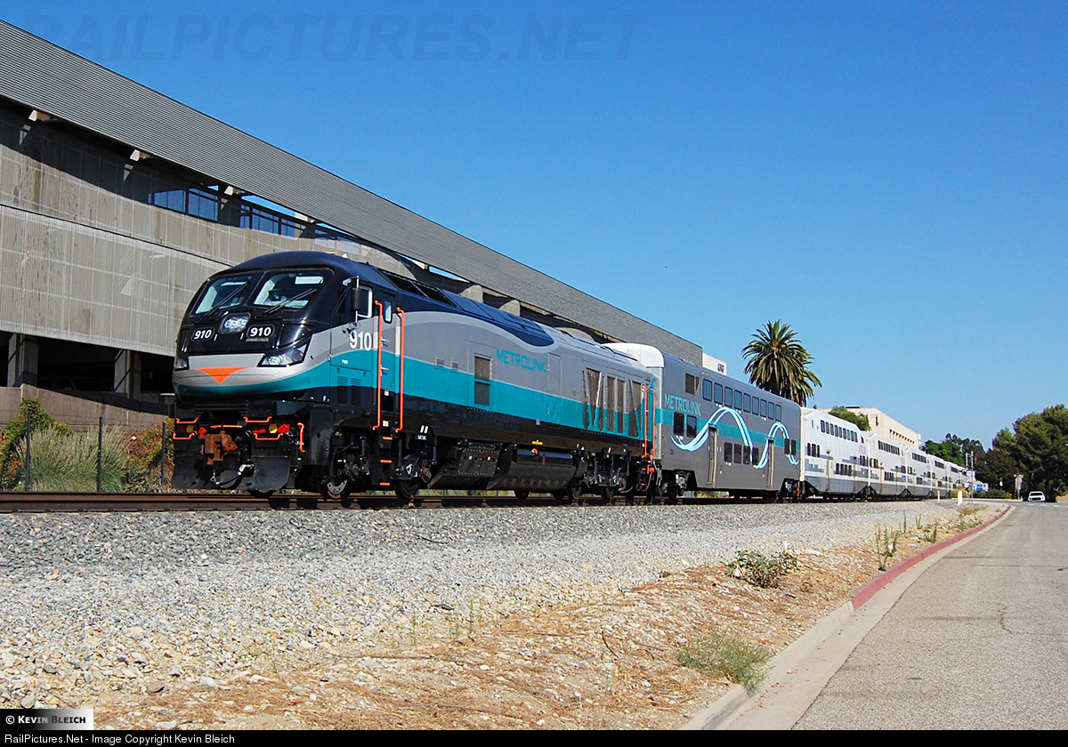 SCAX 910, a new EMD F125 unit, leads a 12 car test train with #905 on the rear on a Sunday afternoon through Claremont. Once testing on these locomotives is completed within the next 1-2 months they will be placed in revenue service.