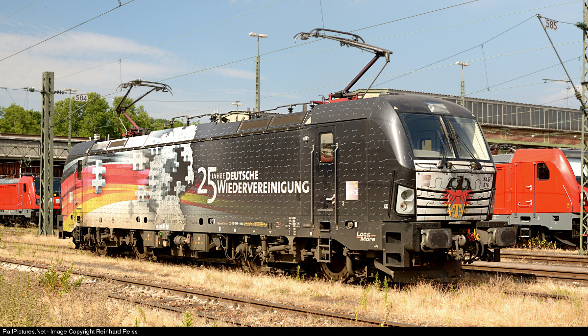 MRCE Vectron 193 876 "Mauerfall" [Fall of the Wall, 25 years German reunion) stands in Stuttgart depot during a photo event.
