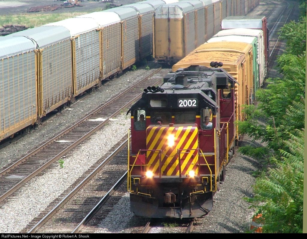SWP #2002 leads a short train down track #2 enroute to Greene JCT. and the railroad's Uniontown branch