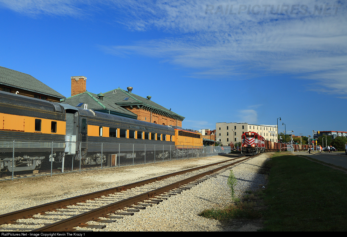 Westbound WSOR train T7 passes the old Milwaukee Road Depot with E9 #35A sitting on display.