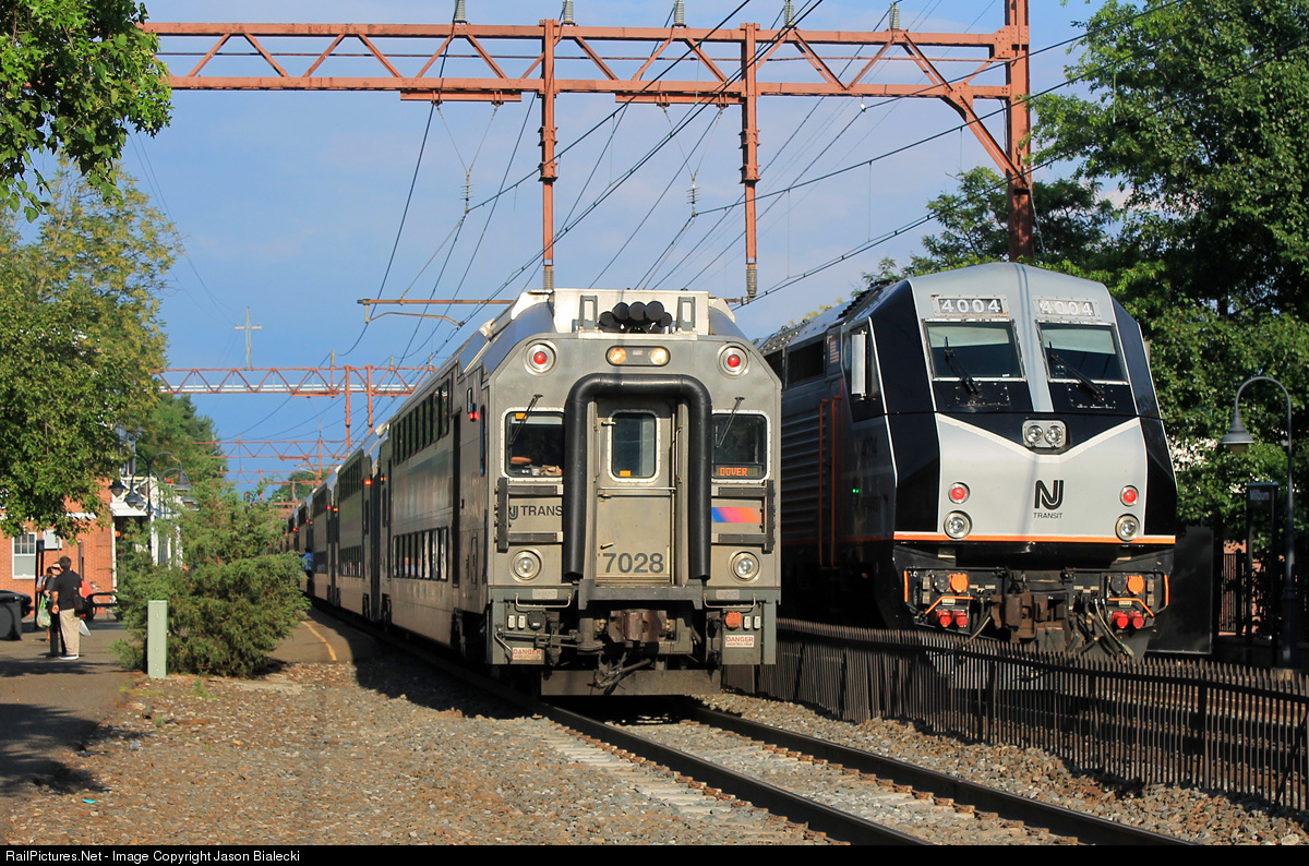 - The train on left, led by multi level car 7028, is about to depart west toward Short Hills, while NJT 4004 begins shoving east toward Maplewood.