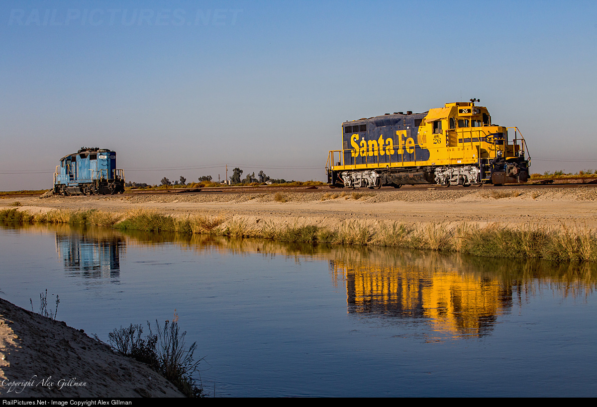 As the sun closes in on the horizon to bring another day in the Central Valley to an end, a pair of historic locomtoives rest on a spur track north of the Golden State Feed & Grain facility in Guersney, Calif. While it might be hard to beleive, both these locomotives were the class-unit, the first locomtoive of an order of so many of the same type, for their oriignal owners. It's somewhat baffling...but would you also believe that both units started their lives as No. 700? Beginning from left to right, we'll start with the history of Penny Newman No. 2001. Built in July of 1960 by EMD, the 2001 was delivered to the Union Pacific Railroad (UP) where it first served as UP No. 700 - the first GP20 in an order of 30 for the iconic western railroad. Serving roughly two years under its as-delivered road number, the 700 was renumbered to 470 in December of 1962 in anticipation for the delivery of 35 GP30's, which would take on the numbers of 700-734. Serving 17 years with the UP, the 470 was retired in October of 1977 and sold to Precision National where it was rebuilt into a GP21. Sent back east for its new life with South East Coal (SEC), the now SECX 2001 (ex-470) worked on coal trains over CSX territory with five sister GP21's before bankruptcy caught up with SEC in October of 1990. National Railway Equipment scooped up the five reamining GP21's (there had been six - one was wrecked while serving with SEC) and were quickly leased to the newly formed Arizona and California Railroad (ARCZ) in May of 1991 - with SECX 2001 moving from NREX 2001 to serving under the reporting marks of ARZC 2001. While an abundance of information can be found on the the 2001's past life from 1960-1991...this is where the unit's life gets a slighty foggy. Serving the ARCZ at least until the final months of 1996 (the last photos of the unit on the ARCZ that I could find), the ARZC 2001 was sold to the Penny Newman Milling compnay in the early-to-mid 2000's where it has resided in Guenrsey since. Golden State Feed & Grain now owns the facility at Guernsey and does not operate the unit. The last photos of the unit actually working here date back to 2010 with the unit having resided at it's current parked location at least since 2012. An ex-Nickle Plate Railroad SD9 (now SD9m) currently serves as the facility's shuttling unit for grain cars. Now that you know the history of the 2001, we'll move to the right and look into the AARX No. 26. Five years older than it's current nieghbor - the 2001 - No. 26 started out life in May of 1956 as an EMD GP9 delivered to the Atchison Topeka and Santa Fe Railway (ATSF) as No. 700 - the first GP9 to be accepted by the company. Serving the ATSF throughout California, the veteran GP9 was renumbered to 2900 before recieivng its final numbering down the road of 2260. Serving the Nuwest Milling LLC. facility in Hughson, Calif. from 2008 to 2014, the locomtoive moved to the southern part of the Central Valley and found itself under the Association of American Railroads (AARX) reporting marks - now AARX 26. In late 2016 the unit was being used at the Hanford Milling facility in the Kings Park Industrial area (south of Hanford), but has since moved to the Golden State Feed & Grain facility at Guernsey as of this posting. Historical information on the 2001 found on utahrails.net: http://utahrails.net/articles/up-gp20.php Historical information on the 26 found on thedieselshop.us: https://www.thedieselshop.us/ATSF.HTML