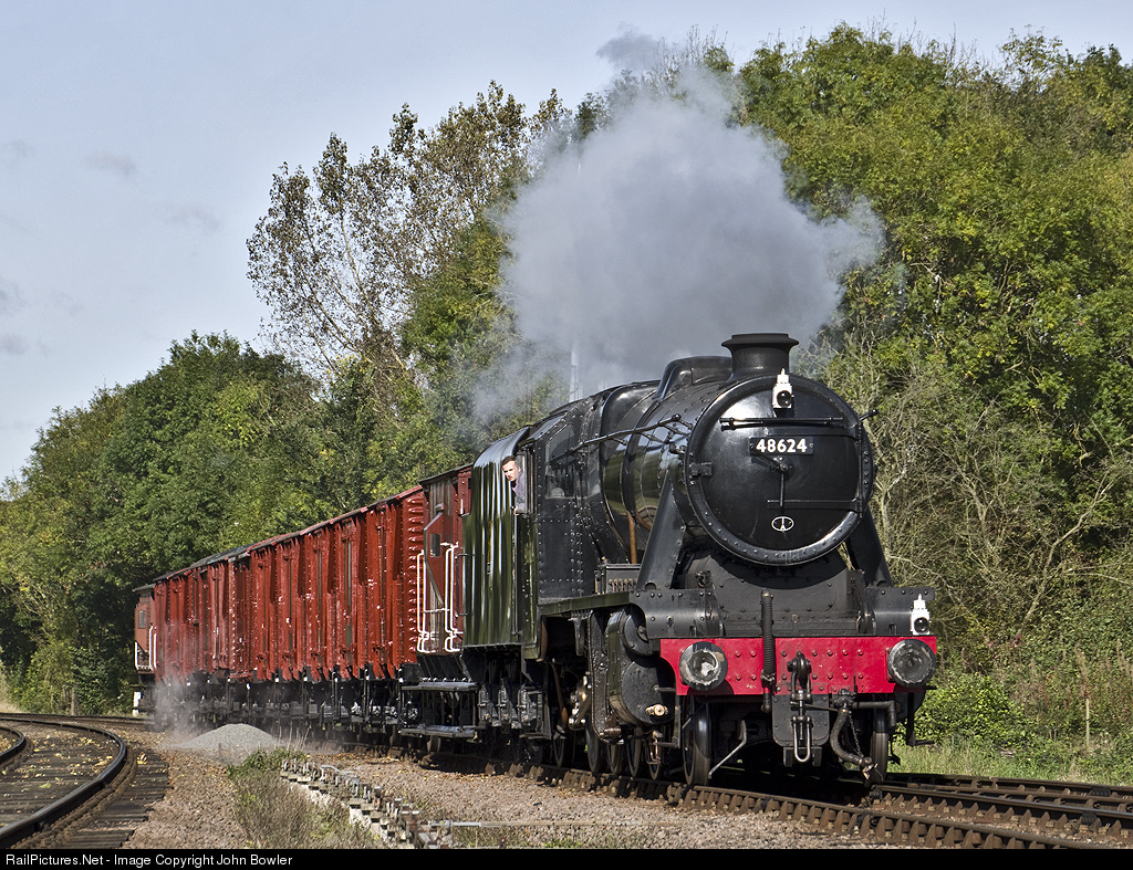 | LMS 48624 nears Swithland Sidings with the 1055 Loughborough - Rothley Brook fitted freight goods train during the Great Central Railways Autumn Steam Gala Event marking '50 Years Since The End Of British Railways Southern Region Steam'. |