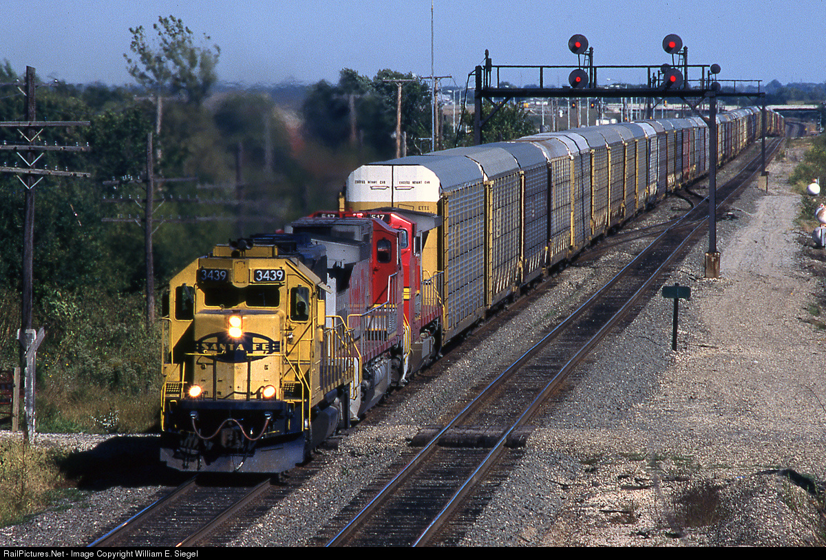 An older, yet still dependable EMD locomotive heads up these westbound autos. I saw a lot of trains in Gardner back in the 90's, but this is the only GP-35 that I photographed there. The bridge from where I would conveniently take these pictures and the signal bridge are gone now, and of course, so is the Santa Fe. Very thankful for those days; great memories I'll always cherish.
