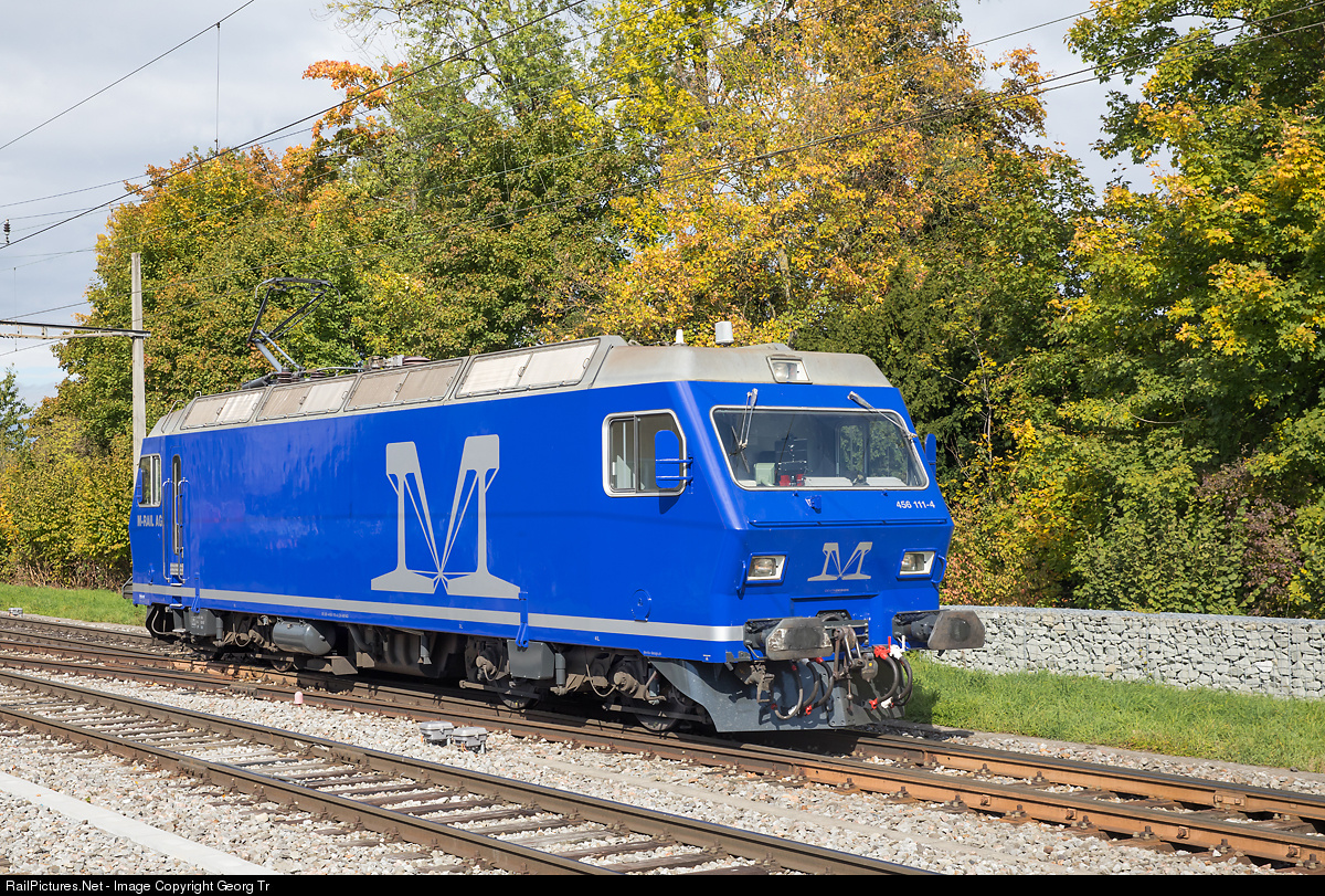 Re 456 # 111 of M-Rail AG (Railway of Müller Frauenfeld AG) is running through Kreuzlingen Hafen, coming from Konstanz/Germany and going back to Erlen via Romanshorn. The locomotive pulled 3 new "Flirt" trainsets # 7306, 7305 and 7406 for the dutch Synthus company from the commissioning center Erlen to Konstanz, for export to the Netherlands. The locomotive was built in 1993 by SLM and ABB as Re 456 # 142 for the Vereinigte-Huttwil-Bahnen (VHB), later Regionalverkehr Mittellland (RM), then BLS. From june 2002 to june 2011 rented to the Südostbahn (SOB) with red-white SOB paint scheme, from 2014 rented to Swiss Rail Traffic (SRT).