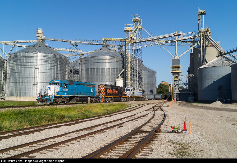 | Wheeling & Lake Erie train 223 rolls through the Sunrise Cooperative complex at Clarksfield, Ohio on a beautiful sunny afternoon. This train would tie down at Hartland yard just west of here. |