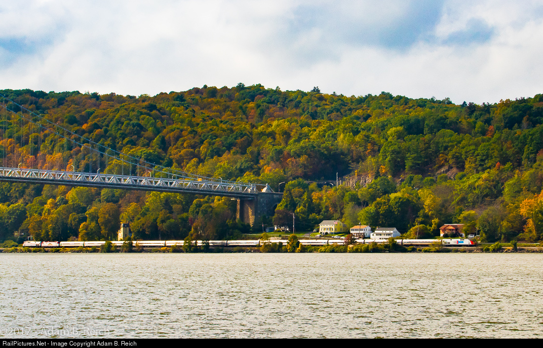 Autumn Express Under the Mid-Hudson Bridge: Heritage P42DC #156 leads Amtrak's Autumn Express under the Mid-Hudson Bridge by way of CSX's River Subdivision in Highland, New York. Note the trailing locomotives in the distance. Photo taken from Victor C. Waryas Park on the Poughkeepsie side of the Hudson River.