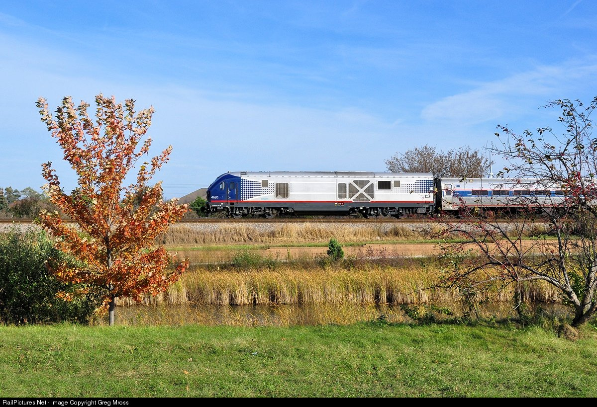IDTX 4620 pushes Amtrak Hiawatha 338 out of the Sturtevant, WI depot on October 20, 2017.