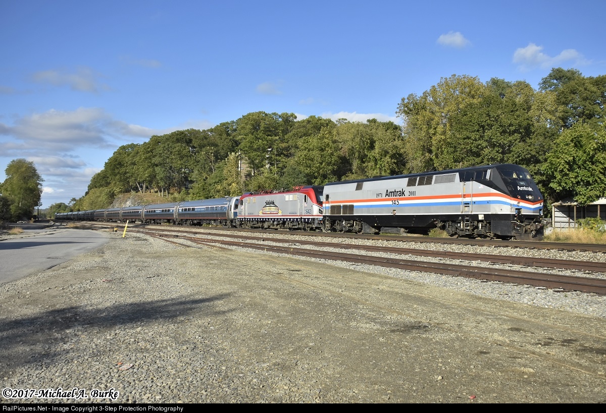 RailPictures.Net Photo: AMTK 145 Amtrak GE P42DC at Poughkeepsie, New York by 3-Step Protection Photography